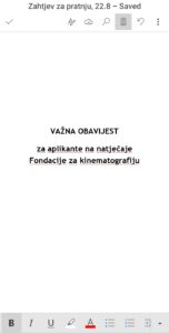 Aktuelnosti B VAŽNO OBAVJEŠTENJE za aplikante na konkurse za izbor korisnika sredstava Fondacije za kinematografiju za pozicije sufinansiranja filmskih projekata za 2023. godinu i za izbor korisnika sredstava Fondacije za kinematografiju za pozicije sufinansiranja komplementarnih djelatnosti za 2023. godinu Pročitaj više » 5 Septembra, 2023