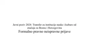 Aktuelnosti B Formalno-pravno neispravne prijave za Javni poziv – Transfer za institucije nauke i kulture od značaja za Bosnu i Hercegovinu 2024 Pročitaj više » 30 Jula, 2024