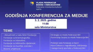 Aktuelnosti B Ministarstvo: Godišnja konferencija za medije zakazana 3. 2. 2025. godine u 11 sati Pročitaj više » 31 Januara, 2025