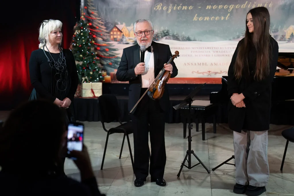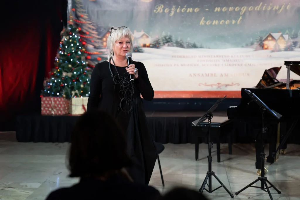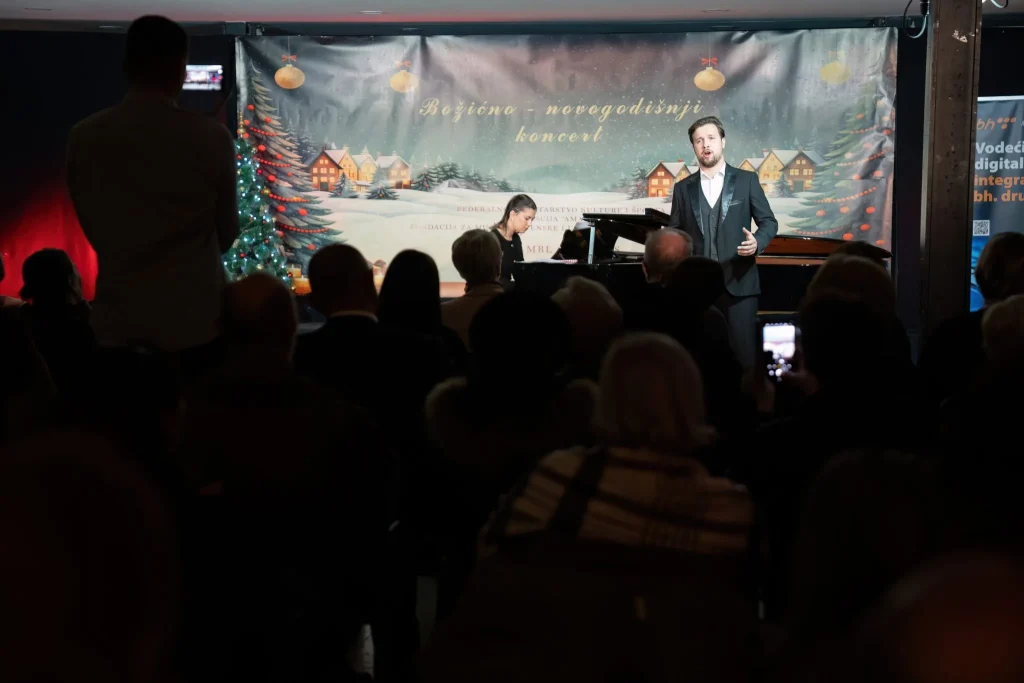 U ozračju praznične atmosfere sinoć je, u organizaciji Federalnog ministarstva kulture i sporta, Fondacije „Amadeus“ i Fondacije za muzičke, scenske i likovne umjetnosti, u sarajevskom Bosanskom kulturnom centru, upriličen Božićno-novogodišnji koncert.