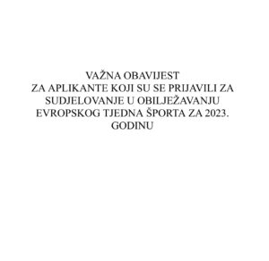 Aktuelnosti H Važna obavijest za aplikante koji su se prijavili za sudjelovanje u obilježavanju Evropskog tjedna športa za 2023. godinu Pročitaj više » 8 rujna, 2023