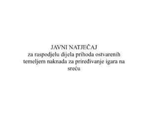 Aktuelnosti H JAVNI NATJEČAJ za raspodjelu dijela prihoda ostvarenih temeljem naknada za priređivanje igara na sreću Pročitaj više » 3 svibnja, 2024
