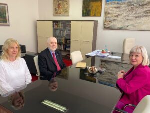 Ministrica Sanja Vlaisavljević sastala se danas u svom Uredu s predstavnicima Matice hrvatske Mostar, predsjednicom Ljerkom Ostojić i članom Predsjedništva Mirom Petrovićem. Predstavnici Matice hrvatske Mostar prezentirali su ministrici Vlaisavljević svoj rad, projekte koje realiziraju te planove za predstojeće razdoblje.