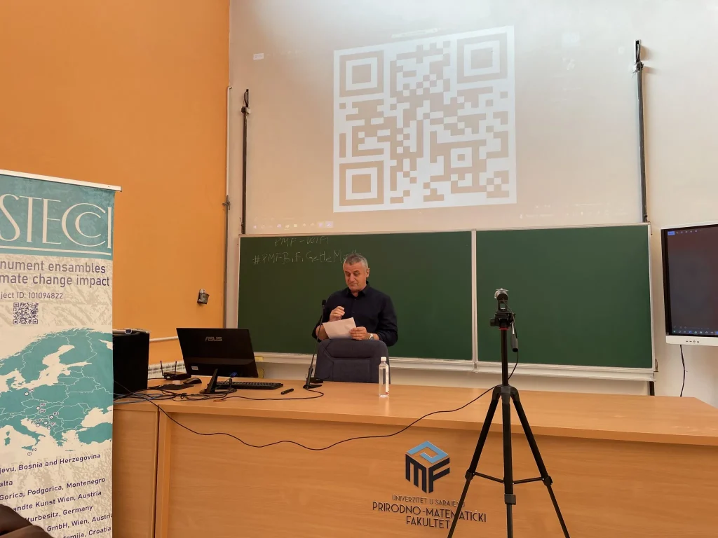 Stručnjaci Zavoda za zaštitu spomenika u sastavu Federalnog ministarstva kulture i športa sudjelovali su na višednevnoj modularnoj radionici, održanoj od 29. do 31. listopada 2025. godine na Prirodno-matematičkom fakultetu Univerziteta u Sarajevu. Radionica je organizirana u okviru međunarodnog istraživačkog projekta Horizon Europe STECCI – Stone monument ensembles and the climate change impact. Program je proveden u hibridnom formatu, kombinacijom predavanja i praktičnih demonstracija održanih uživo i putem online platforme.