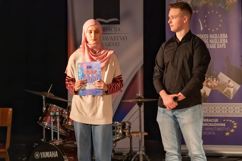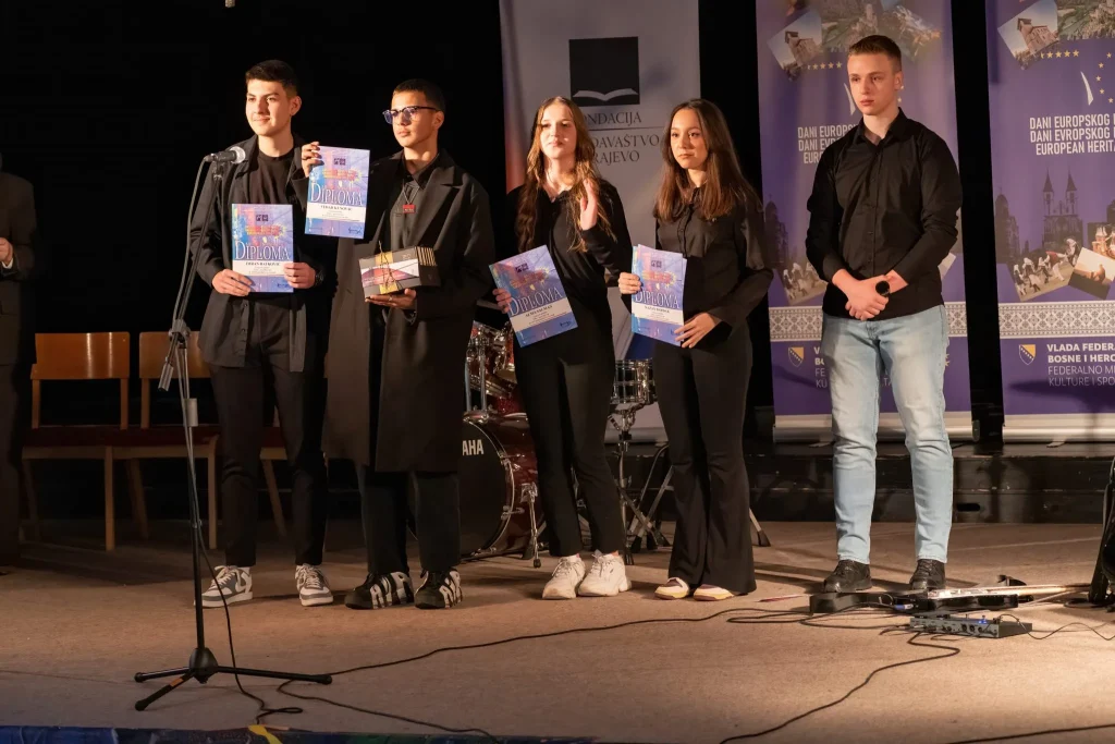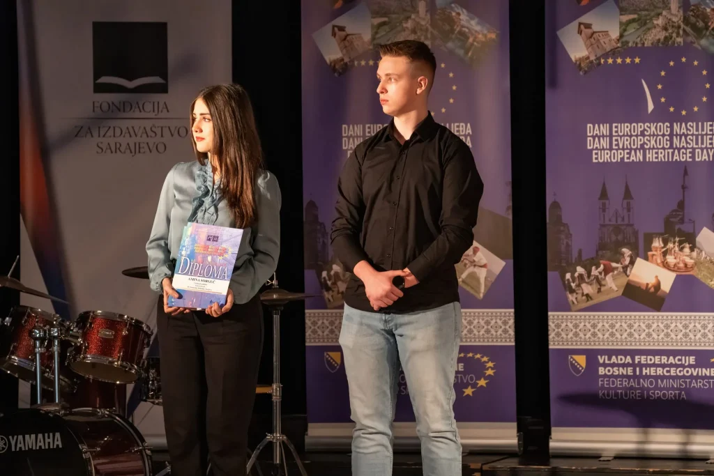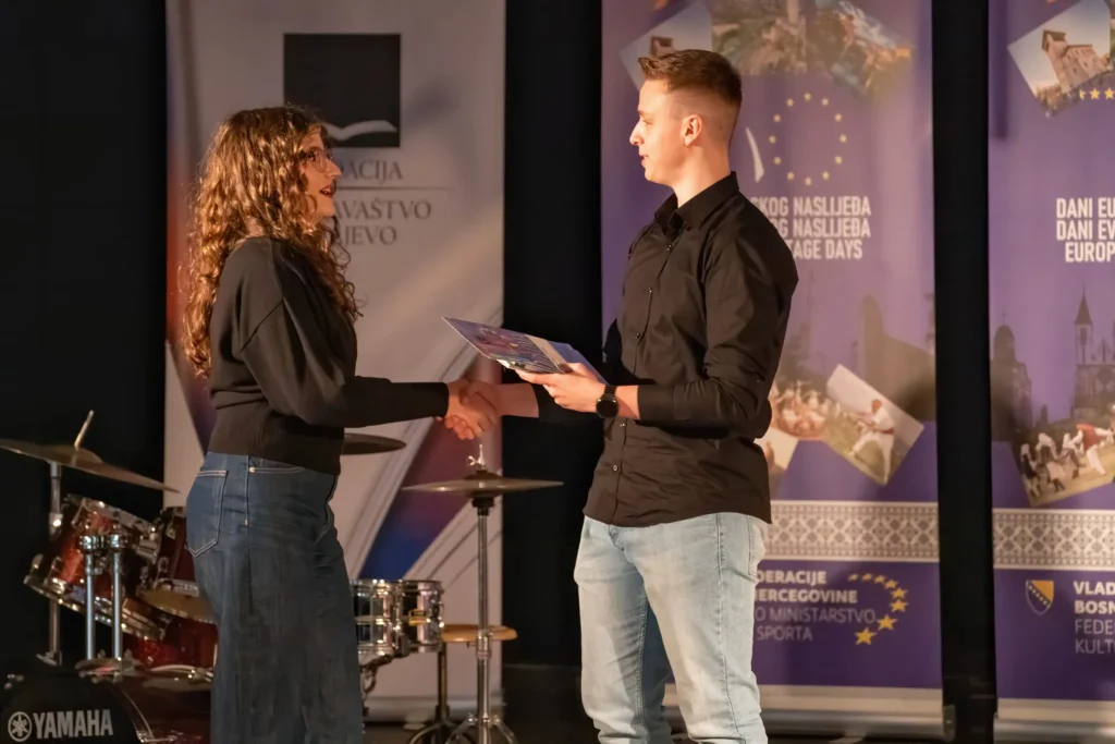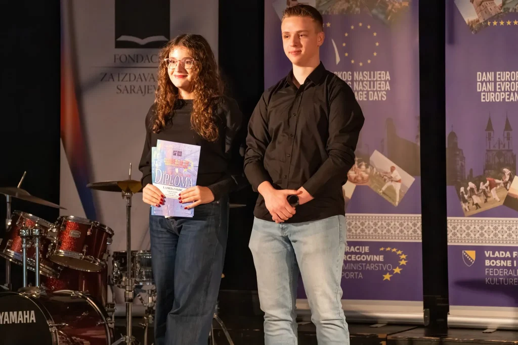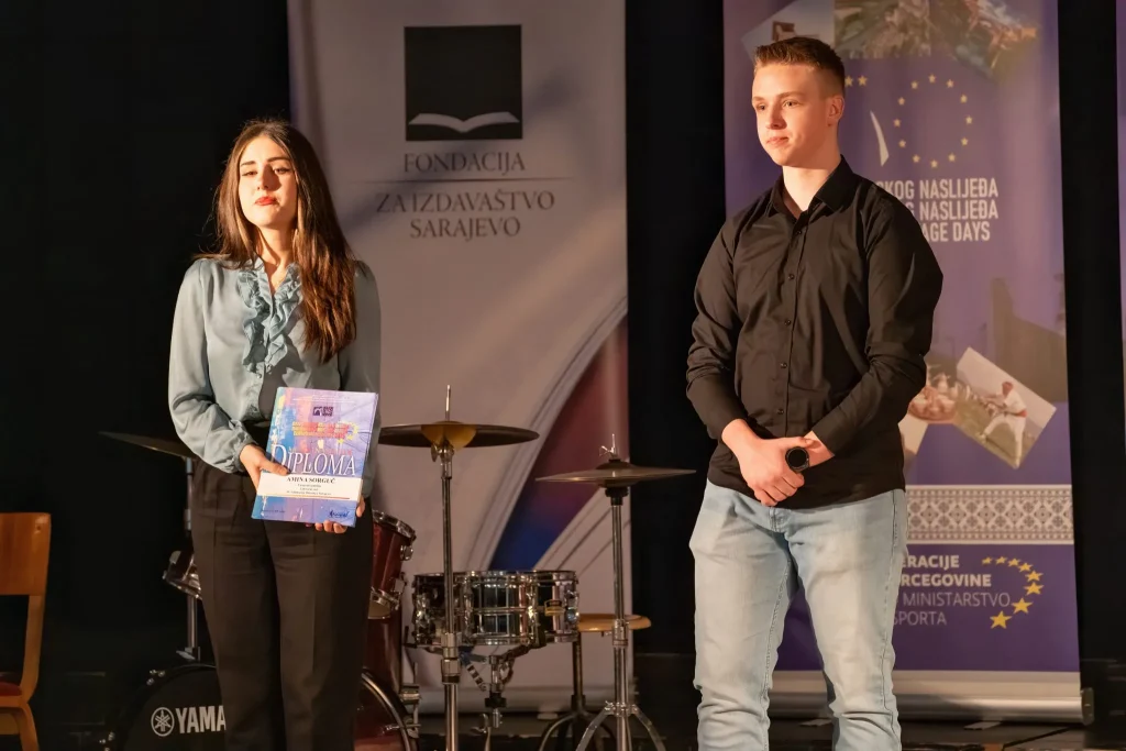 U prekrasnom ambijentu Katoličkog školskog centra „Sveti Josip“ sinoć je, u organizaciji Medijskog centra i Federalnog ministarstva kulture i sporta, upriličena završna svečanost dodjele diploma i nagrada sudionicima natjecanja „Mladi i naslijeđe 2025.“.