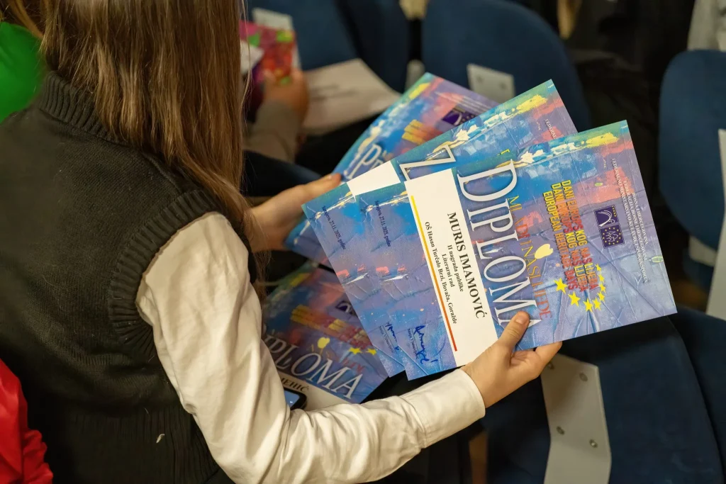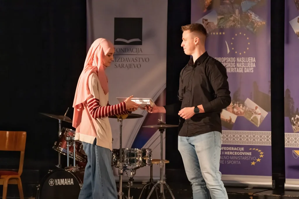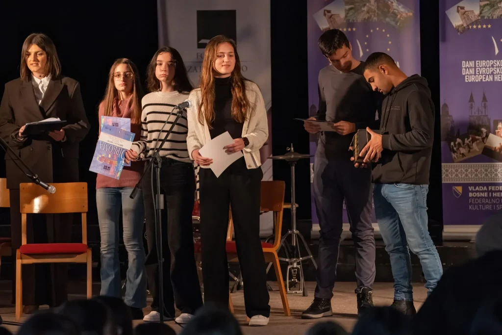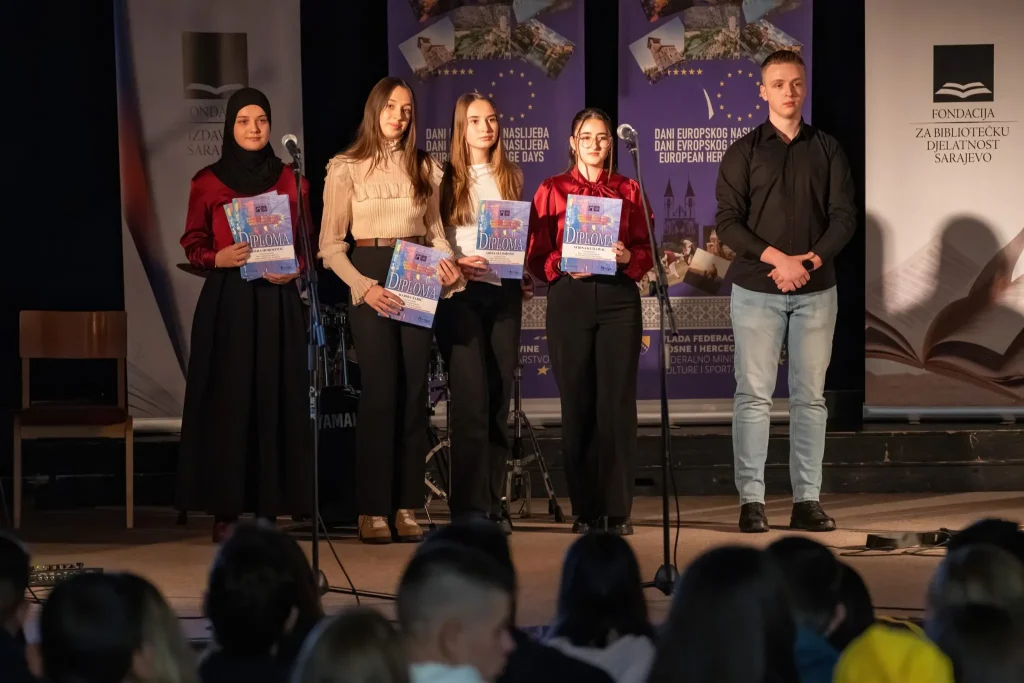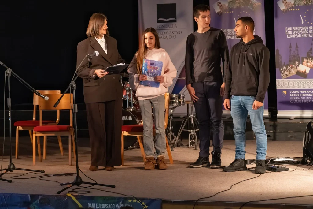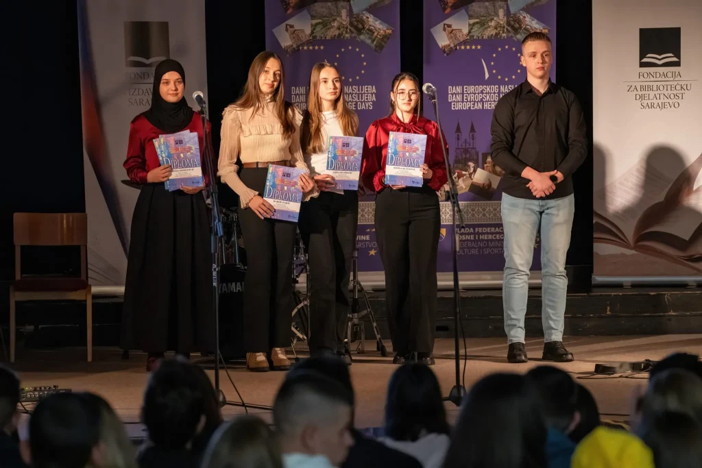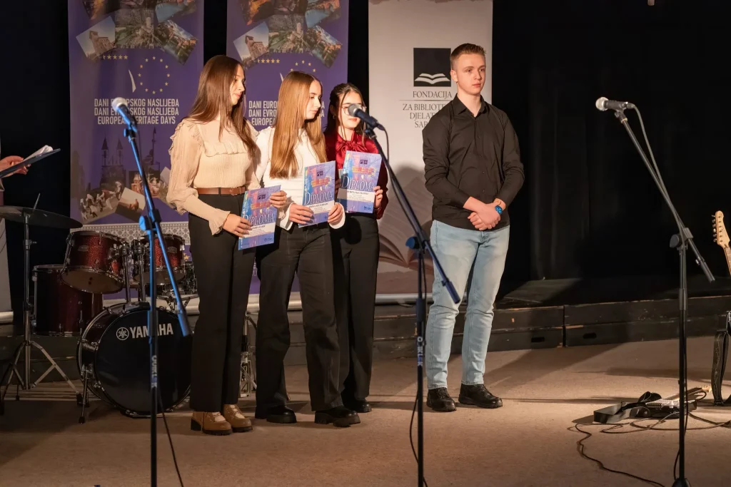 U prekrasnom ambijentu Katoličkog školskog centra „Sveti Josip“ sinoć je, u organizaciji Medijskog centra i Federalnog ministarstva kulture i sporta, upriličena završna svečanost dodjele diploma i nagrada sudionicima natjecanja „Mladi i naslijeđe 2025.“.