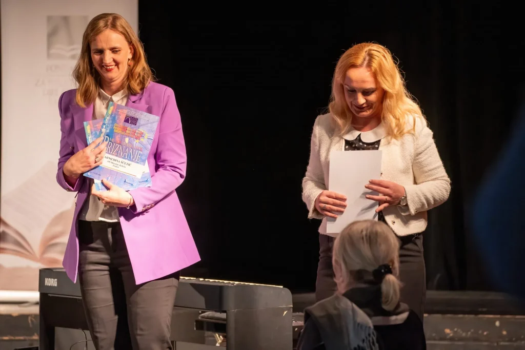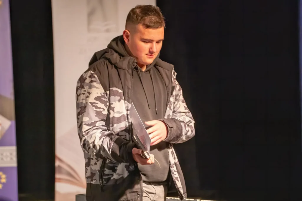 Diplome i priznanja nagrađenim osnovcima od 6. do 9. razreda uručili su prošlogodišnji dobitnici nagrada, učenici Centra za slušnu i govornu rehabilitaciju Sarajevo, Jeton Azemlahaj i Jasmin Stanar, dok je priznanja najboljim srednjoškolcima uručio također prošlogodišnji nagrađeni učenikMevludin Karamustafić iz Srednje škole „NORDBAT 2“ iz Vareša.