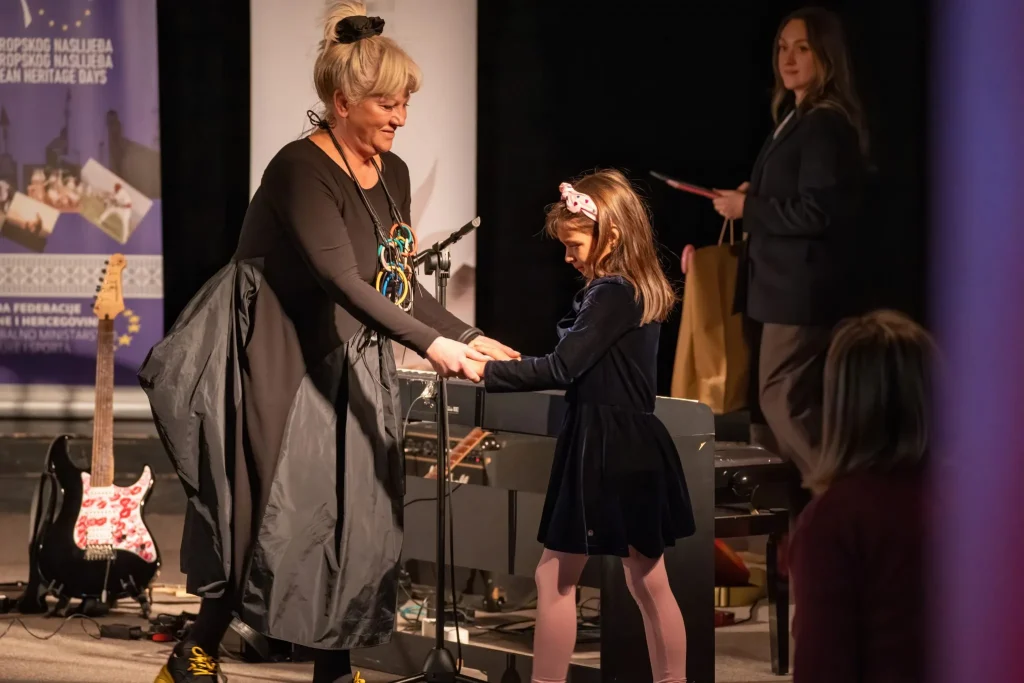 „Dobro nam došli dragi naši učenici i nastavnici, svi vi putnici koji ste prešli dalek put kako bismo večeras bili zajedno na završnoj večeri Programa Mladi i naslijeđe. Posebno sam ponosna na činjenicu da je za ovogodišnje radove stiglo gotovo 40.000 vaših glasova, što je cijeli jedan grad! Presretna sam što zajedno možemo biti dio ove priče. Sa nama su danas i dvije fondacije Federalnog ministarstva kulture i športa: Fondacija za izdavaštvo i Fondacija za bibliotečku djelatnost koje danas, po prvi put, sudjeluju u Programu „Mladi i naslijeđe“, a pomogli su nam da večeras osiguramo i najljepše nagrade nagrađenima“ poručila je ministrica Vlaisavljević koja je potom uručila diplome najmlađim osnovcima, sudionicima natjecanja „Mladi i naslijeđe“.