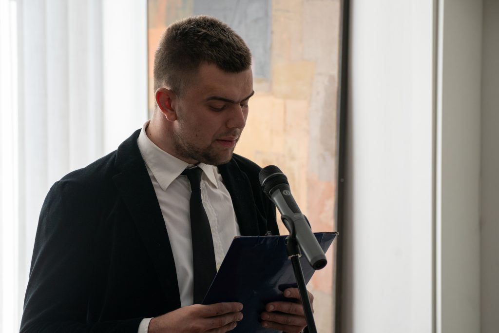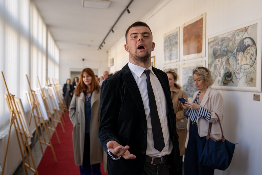 Mladi umjetnik se u predvorju Ministarstva prepunom ljubitelja umjetnosti predstavio novim ciklusom radova inspirisanim Sarajevom. Motivi Baščaršije, Miljacke, Katedrale i urbanog života grada pretočeni su u dinamične kompozicije