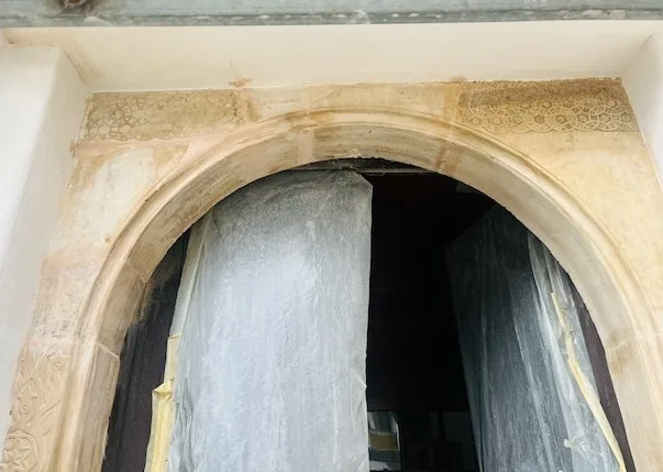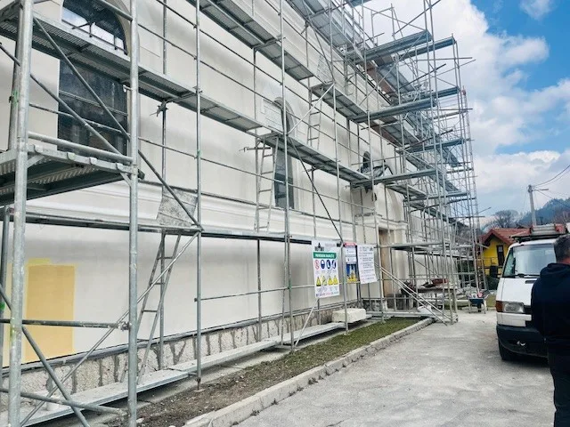 Uvidom u stanje radova utvrđeno je da su radovi na pripremi fasade nastavljeni. Postavljeni su dekorativni elementi oko ulaznih vrata na zapadnoj fasadi. Utvrđeno je da se radovi izvode u skladu sa projektnom dokumentacijom i datim smjernicama.