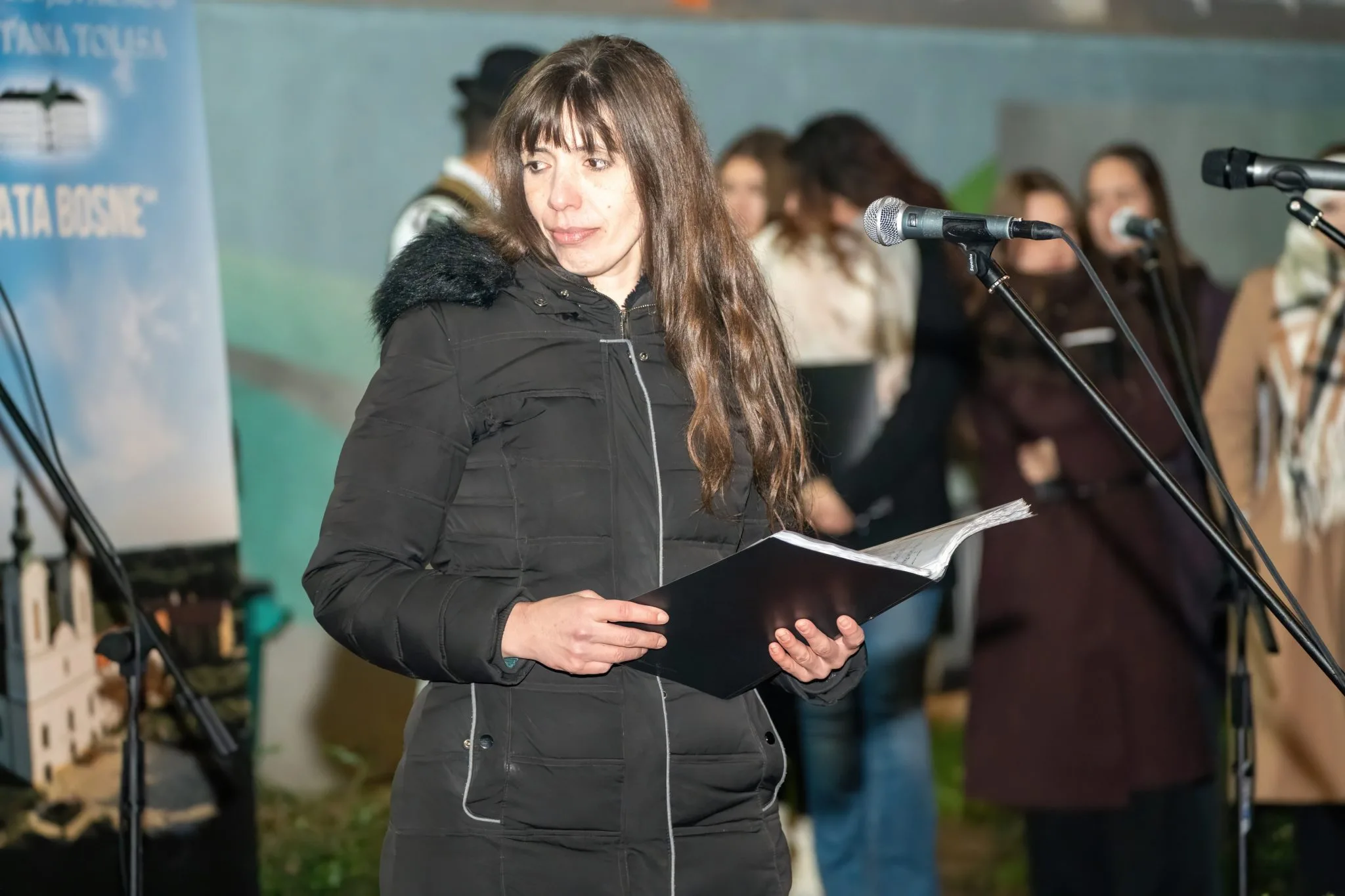 “Sretna sam što naši gosti dalaze iz daleka, iz prelijepog dijela naše Bosne i Hercegovine u Sarajevo i što ćemo večeras ovdje slaviti ljepote našeg Orašja i okružja. O Orašju se zaista može mnogo govoriti, ali ono što impresionira je entuzijazam naših gostiju koji pomjera planine. Dragi prijatelji, dobro nam došli, uvjerena sam da ćete učiniti sve da ova večer bude za pamćenje, pa neka radost počne” poručila je ministrica Vlaisavljević.