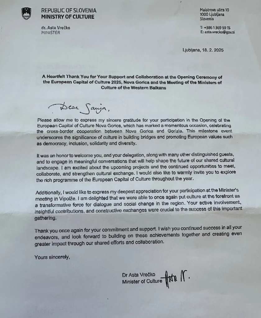 Federalnom ministarstvu kulture i sporta, posredstvom Ministarstva civilnih poslova BiH, dostavljena je informacija Ambasade Grčke