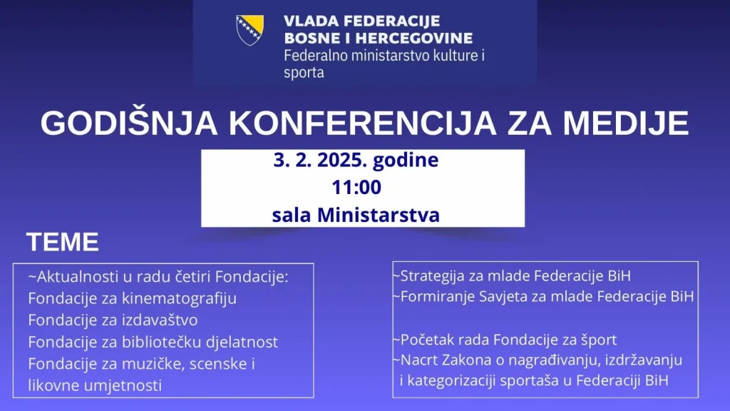 Federalnom ministarstvu kulture i sporta, posredstvom Ministarstva civilnih poslova Bosne i Hercegovine, dostavljena je informacija