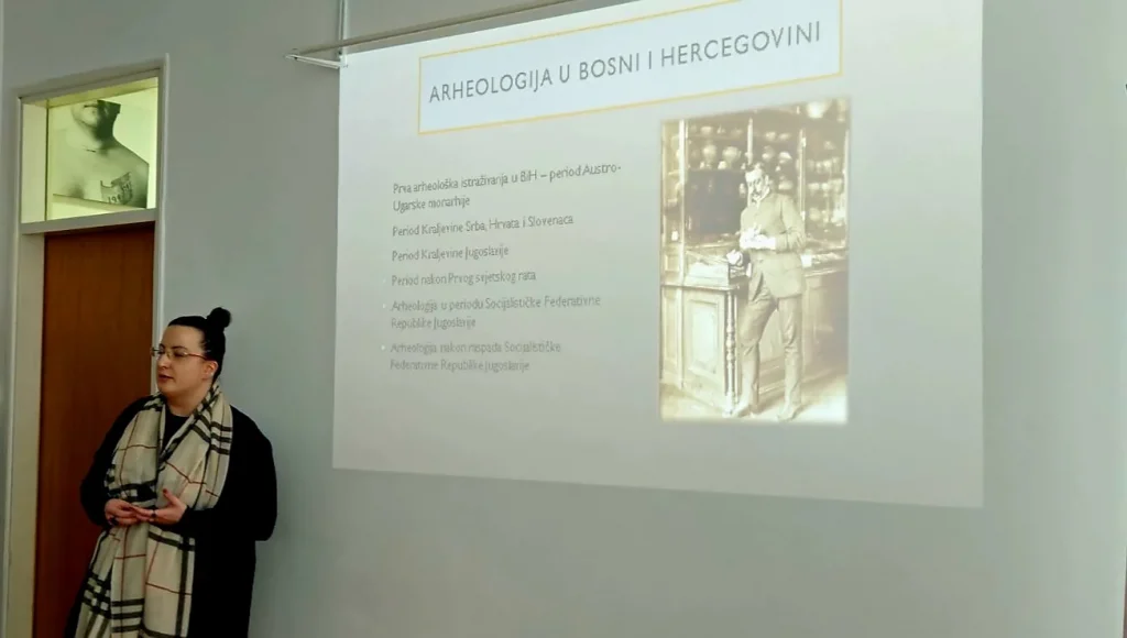 Predavanje „Uloga arheologije u Zavodu za zaštitu spomenika“ pružilo je sveobuhvatan uvid u važnost arheologije kao naučne discipline te njenu izraženu multidisciplinarnost. Arheologija je kroz izlaganje predstavljena kao nauka koja u saradnji sa brojnim drugim disciplinama doprinosi razumijevanju i očuvanju kulturno-historijskog naslijeđa. Sve to bio je uvod u ovogodišnje „Dane evropskog naslijeđa 2026“ koji ove godine imaju temu Heritage at Risk: Revive, Resist, Reimagine.