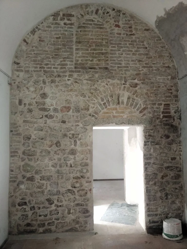 Након што је малтер у потпуности уклоњен са једног попречног зида (оригинални дио ханикаха), обијене постојеће и поново изведене нове фуге, на очишћен зид нанесен је заштитни премаз у два слоја. Констатовано је да су два слоја премаза довољна те да је конзервиран и заштићен зид спреман за презентацију. На овај начин могуће је презентирати слојевитост употребе различитих материјала и грађевинских фаза које могу бити интерпретиране као стратиграфски пресјек историје објекта.