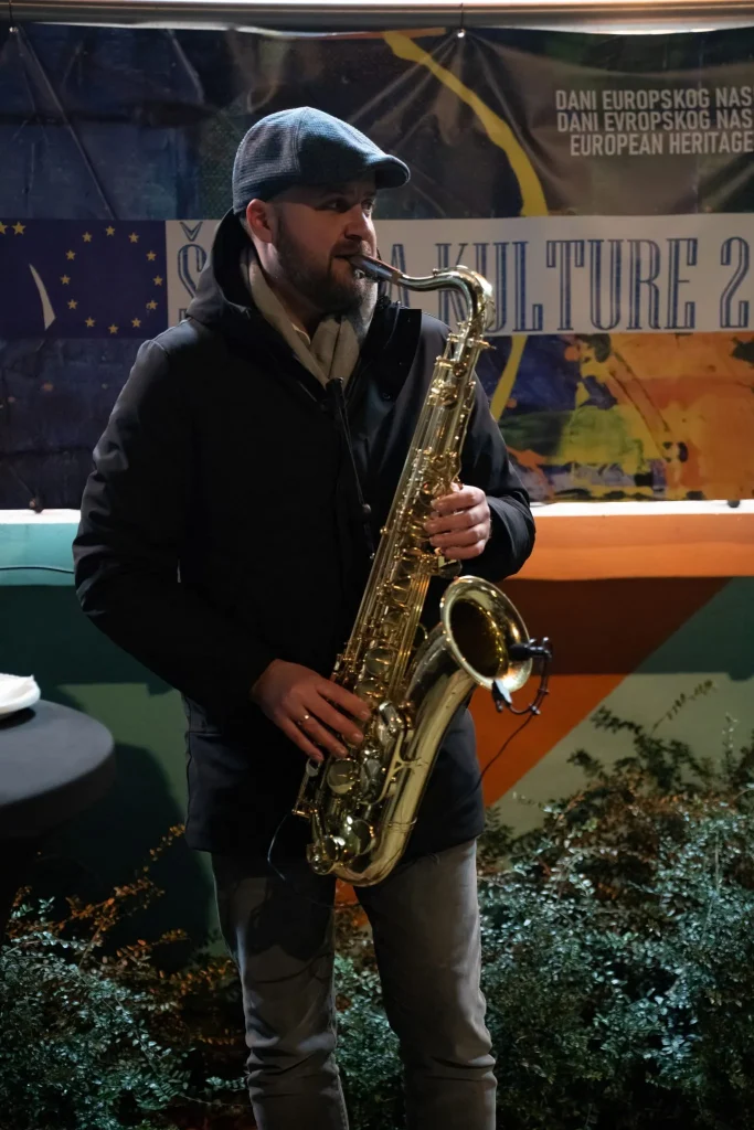 Децембарску вечер додатно је уљепшала чаробна музичка увертира саксофонисте Дарка Шуњића, члана Хрватске глазбе Мостар, чији су тонови створили посебан угођај и најавили вечер заједништва, радости и празничног духа.