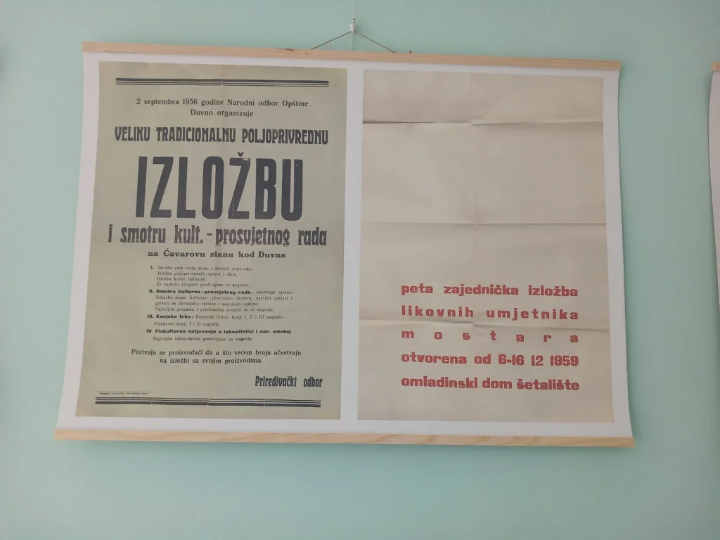 Изложба плаката представља културно – умјетнички живот Мостара и ширег дијела Херцеговине у периоду од 1955. до 1965. године. Наведеном изложбом указује се умјетнички, графички, друштвени, социјални и хисторијски приказ дјеловања институција средином прошлог стољећа. У том контексту изложбом се показује настојање Архива да своју богату збирку оригиналних плаката представи широј јавности.