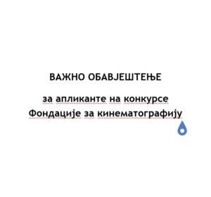 Naslovna S ВАЖНО ОБАВЈЕШТЕЊЕ за апликанте на конкурсе за избор корисника средстава Фондације за кинематографију за позиције суфинансирања филмских пројеката за 2023. годину и за избор корисника средстава Фондације за кинематографију за позиције суфинансирања комплементарних дjелатности за 2023. годину Pročitaj više » септембар 5, 2023