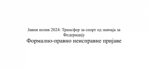 Naslovna S Формално-правно неисправне пријаве за Јавни позив – Трансфер за спорт од значаја за Федерацију 2024. Pročitaj više » јул 29, 2024