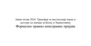 Naslovna S Формално-правно неисправне пријаве за Јавни позив – Трансфер за институције науке и културе од значаја за Босну и Херцеговину 2024 Pročitaj više » јул 30, 2024