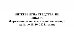 ИНТЕРВЕНТНА СРЕДСТВА, III циклус у 2024. години: Формално-правно неисправне апликације до 29. 10. 2024. године Pročitaj više » децембар 3, 2024