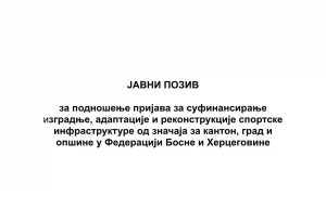 ЈАВНИ ПОЗИВ за подношење пријава за суфинансирање изградње, адаптације и реконструкције спортске инфраструктуре од значаја за кантон, град и јединице локалне самоуправе у Федерацији Босне и Херцеговине Pročitaj više » август 17, 2024