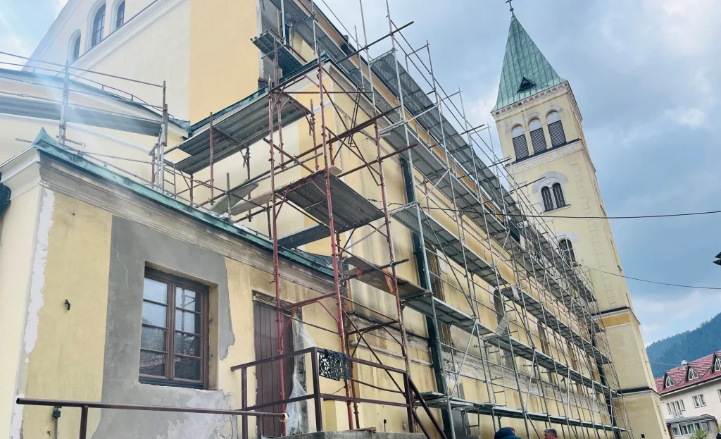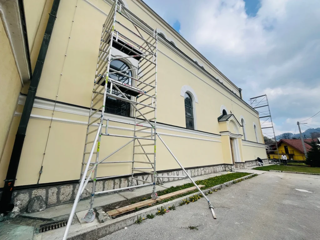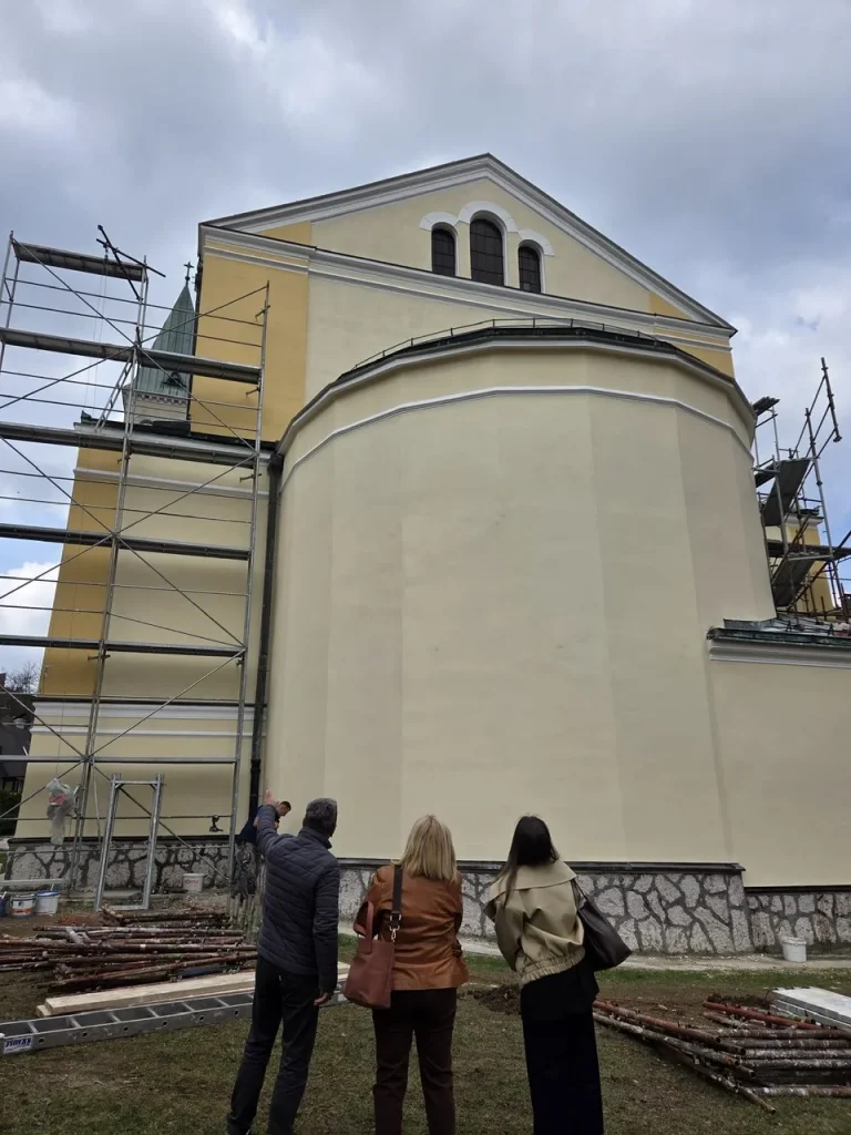 Uvidom u stanje konzervatorsko-restauratorskih radova na tekućem održavanju fasade župne crkve sv. Mihovila Arkanđela u Varešu, izvršenim 16. 4. 2026. godine, utvrđeno je da su radovi na istočnoj i sjevernoj fasadi kompletirani. Trenutno se izvode pripremni radovi na obijanju nestabilnih dijelova maltera zapadne fasade. U poređenju sa stanjem prije okončanja radova na prethodne dvije fasade, stanje zapadne strane je dosta lošije.